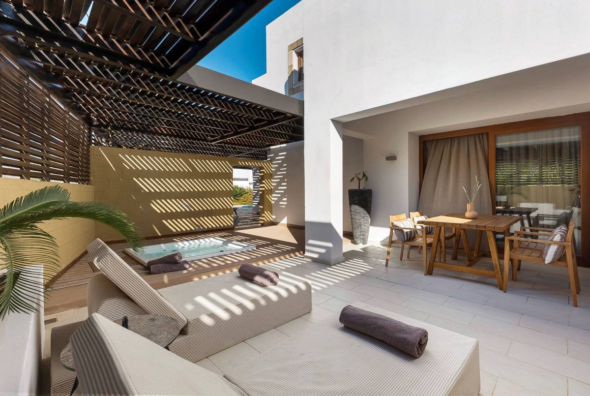 Zwischen minimalistischem Boho-Design, mediterraner Natur und ägäischer Meeresbrise entfaltet sich ein Ort, der Genuss, Verantwortung und Sinnlichkeit auf sanfte Weise miteinander verbindet. Was hier auf den Teller kommt, stammt oft direkt aus der Nachbarschaft: handgerollte Pasta aus Gennadi, Kräuter vom eigenen Dachgarten, Honig von lokalen Imkern. In kleinen Kochsessions mit den Küchenchefs wird daraus ein kulinarisches Erlebnis zum Mitmachen, authentisch, regional und voller Aromen, die lange im Kopf bleiben.